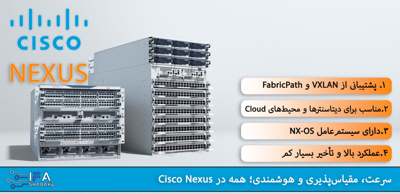 • سیستم‌عامل NX-OS: سیستم‌عاملی خاص با امکانات مدیریت شبکه پیشرفته و پایدار.
